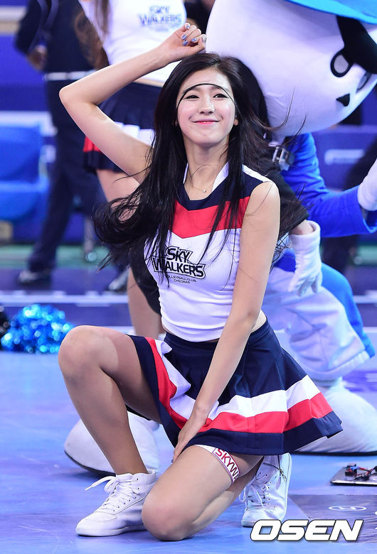 14일 오후 천안 유관순체육관에서 열린 '2014-2015 NH농협 V-리그' 현대캐피탈과 삼성화재의 경기, 치어리더 김연정이 공연을 펼치고 있다.
