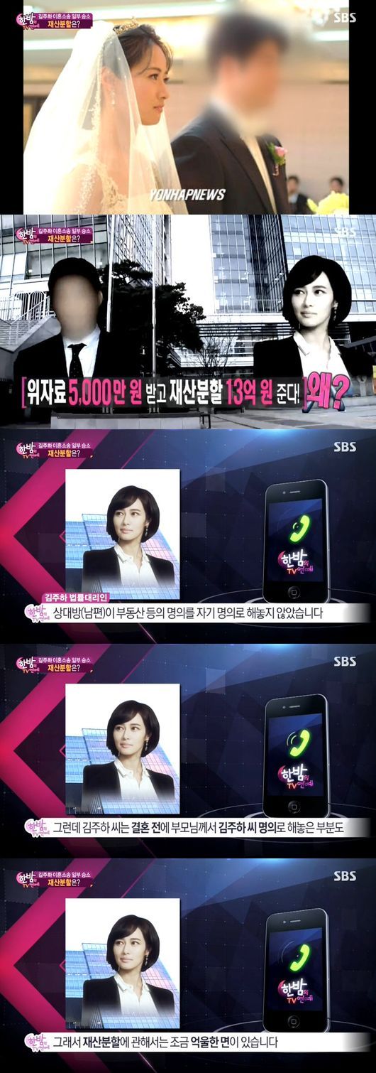 이와 관련해 김주하 측은 “상대방은 부동산 등의 명의를 자기 명의로 해놓지 않았다. 그런데 김주하 씨는 결혼 전 부모님에게 받은 부동산까지 공동재산으로 포함해서 판단된 것 같다. 그래서 재산분할에 관해 조금 억울한 부분이 있다”고 전했다.
