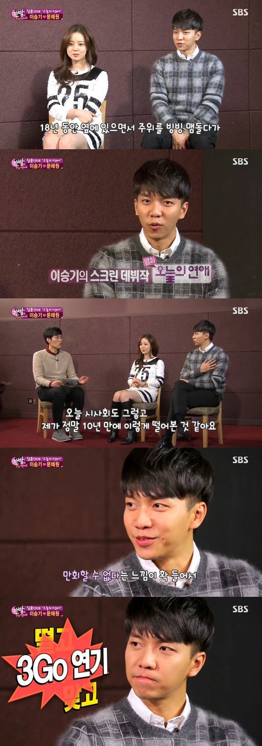 14일 오후 방송된 SBS '한밤의 TV연예'에서는 영화 ‘오늘의 연애’로 스크린에 데뷔한 이승기 문채원의 인터뷰가 공개됐다.