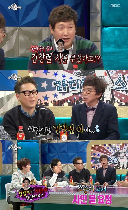 이에 MC들이 김창렬 차와 관련된 사건을 묻자 그는 “장외홈런으로 김창렬 차를 쳤다”며, 김창렬의 반응에 대해서는 “조용히 오셔서 공에 사인을 해달라고 했다”고 말했다.