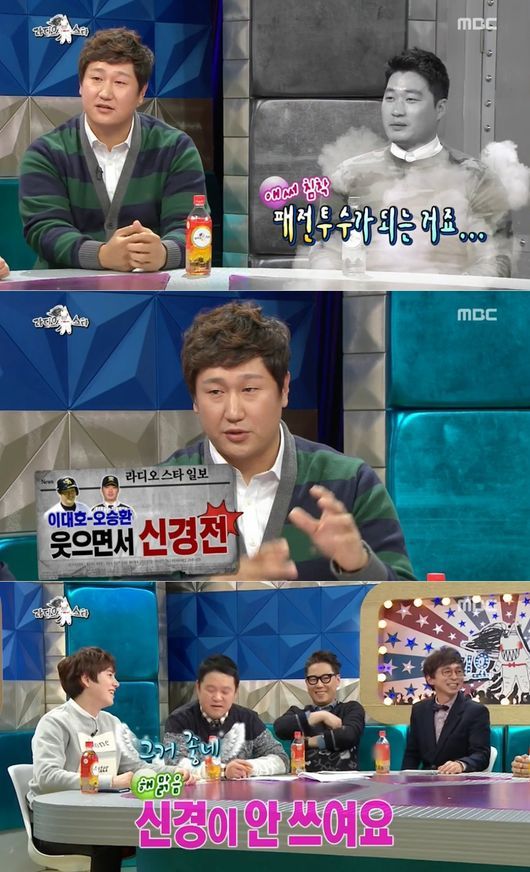 14일 오후 방송된 MBC 예능프로그램 ‘황금어장-라디오스타’에서 MC들은 이대호가 “승환이 어깨를 쉬게 해주겠다. 푹 쉬어라”라고 말한 것을 들었다며 “도발이냐”고 물었다.