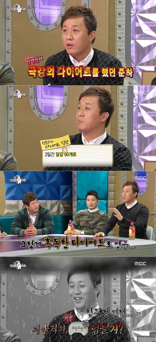 정준하는 14일 오후 방송된 MBC 예능프로그램 ‘황금어장-라디오스타’에서 ‘무한도전’ 파리 패션쇼 특집을 준비하며 다이어트를 하던 상황을 얘기했다.