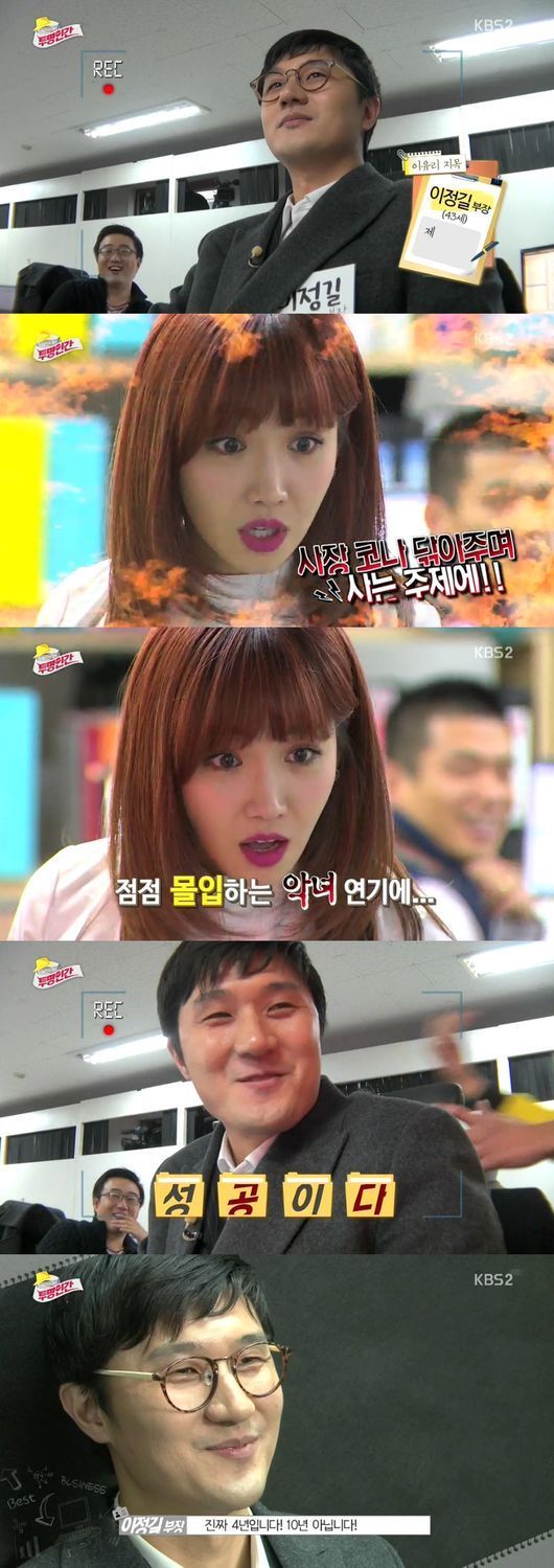 이날 게스트로는 배우 이유리가 출연해 악녀 연기로 웃음을 줬다.