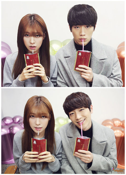 15일 헬로비너스의 공식 트위터에 앨리스와 서강준이 나란히 앉아 건강음료를 마시는 사진이 게재됐다.