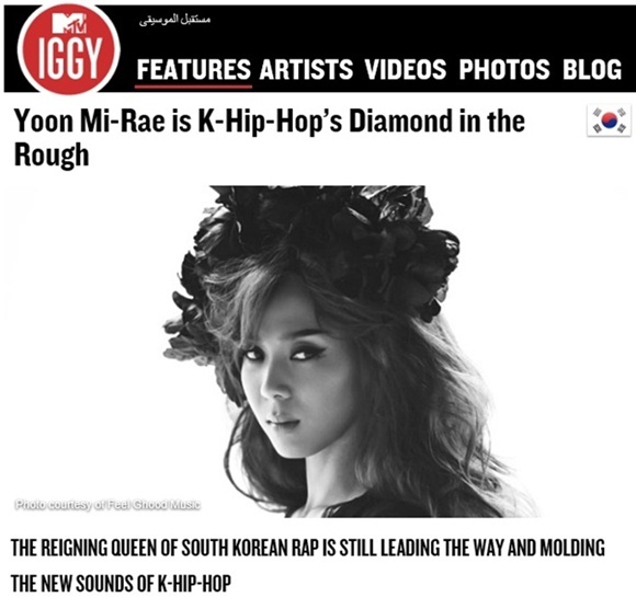 미국의 매체 MTV iggy가 래퍼 겸 보컬리스트 윤미래를 "가공하지 않은 다이아몬드"라고 극찬했다.