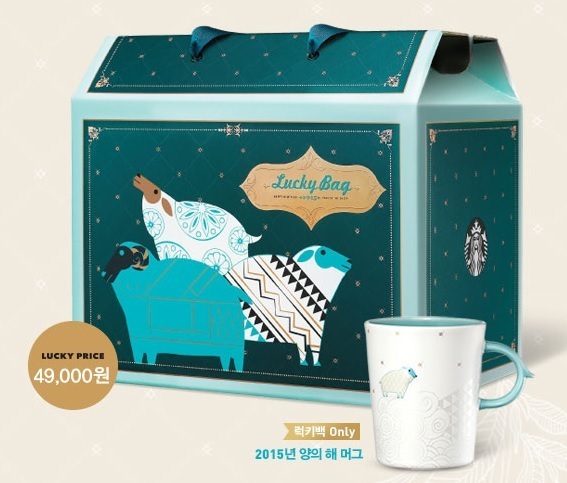 스타벅스 럭키백 2015에는 청양의 해를 기념하기 위한 청양 머그컵이 포함됐으며 스테인리스 스틸 텀블러, 플라스틱 텀블러, 머들러, 코스터(지난 시즌 상품), 음료 쿠폰 3매 등의 제품이 무작위로 구성돼 있다.