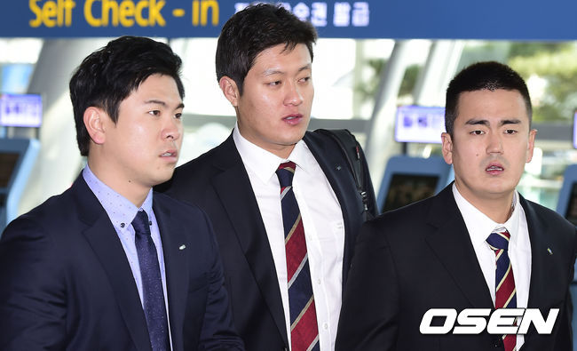 15일 오후 인천 영종도 국제공항을 통해 프로야구 구단 두산 베어스가 스프링캠프를 위해 애리조나로 출국 했다.