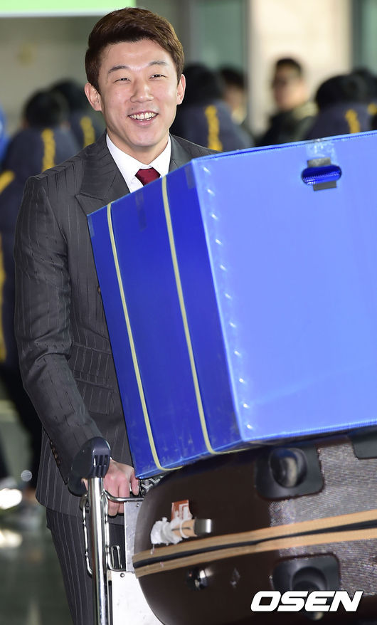 두산 오현택이 출국장으로 향하고 있다.