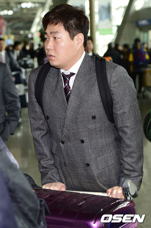 두산 양의지가 출국장으로 향하고 있다.