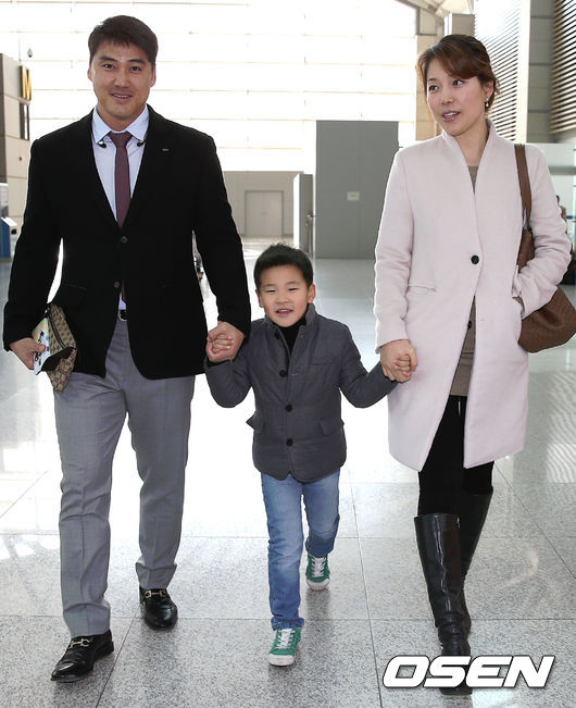두산 홍성흔이 부인 김정임, 아들 홍화철과 함께 출국장으로 향하고 있다.