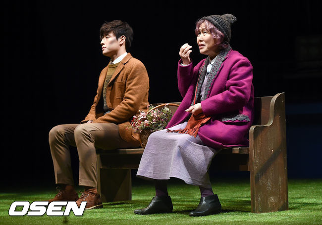 15일 오후 서울 국립극장 달오름극장서 진행된 연극 '해롤드&모드' 프레스콜에서 강하늘과 박정자가 열연을 펼치고 있다.