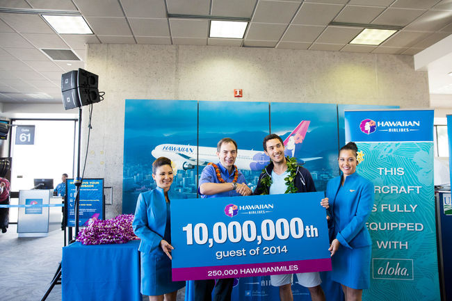 하와이안항공 1000만 번째 탑승의 영광은 지난달 19일 HA386 편을 이용해 마우이섬 카훌루이로 출국하는 마우이 출신의 해리슨 매튜스 씨에게 돌아갔다.