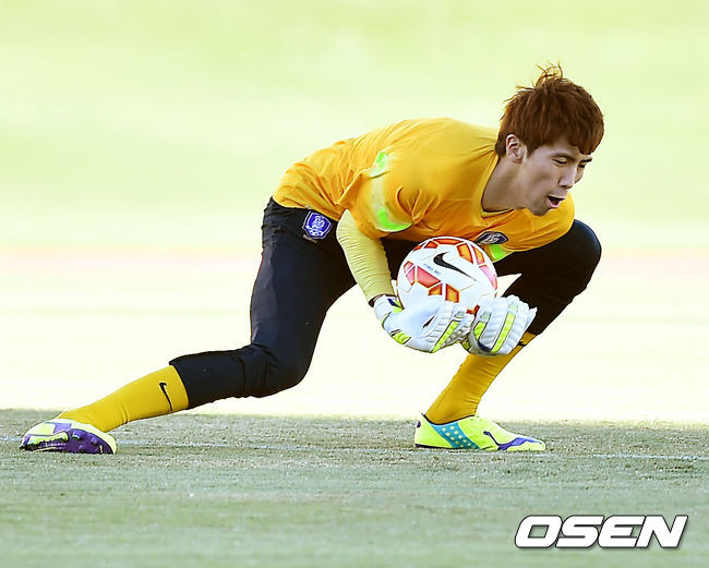 15일 오후(이하 한국시간) 호주 브리즈번 퀸슬랜드 스포츠&애틀레틱 센터에서 2015 AFC 호주 아시안컵대회 한국대표팀이 예선 3차전 호주와의 경기를 위해 훈련을 가졌다. 훈련때 김진현이 수비훈련을 하고 있다.