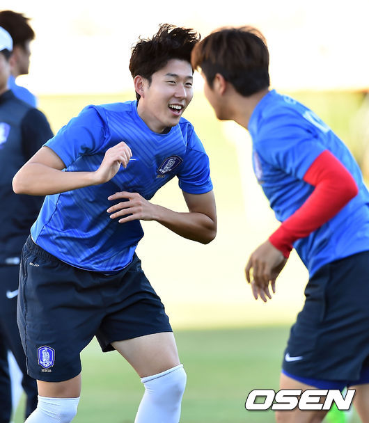 15일 오후(이하 한국시간) 호주 브리즈번 퀸슬랜드 스포츠&애틀레틱 센터에서 2015 AFC 호주 아시안컵대회 한국대표팀이 예선 3차전 호주와의 경기를 위해 훈련을 가졌다. 손흥민이 훈련을 하며 환하게 웃고 있다.