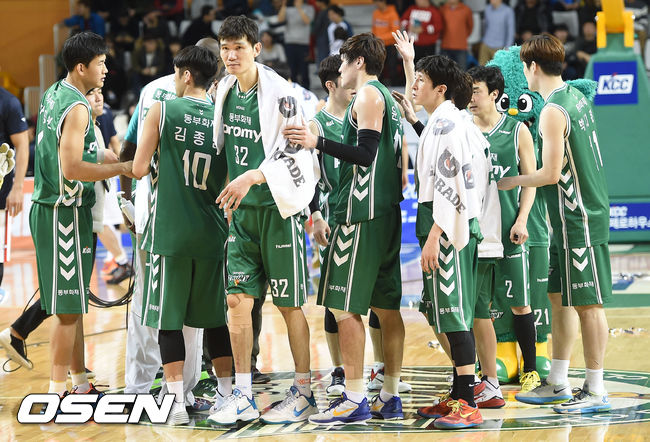 경기종료 후 동부 선수들이 승리의 기쁨을 나누고 있다./ soul1014@osen.co.kr