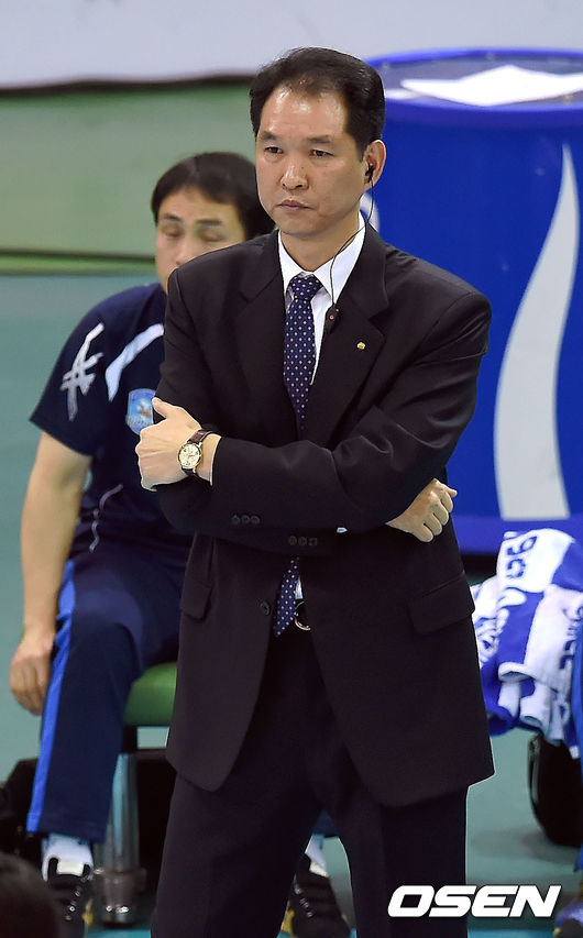 우리카드 양진웅 감독대행이 경기를 지켜보고 있다.