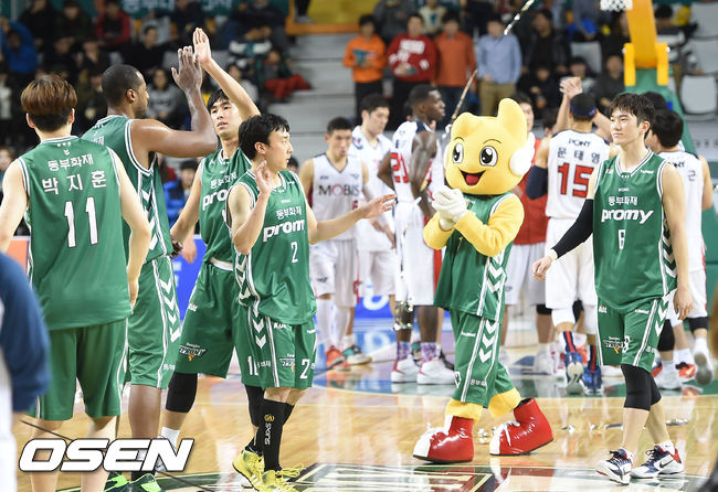 경기종료 후 동부 선수들이 승리의 기쁨을 나누고 있다./ soul1014@osen.co.kr
