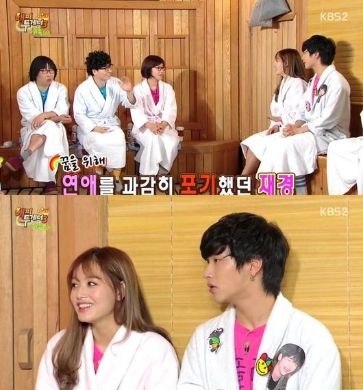 15일 방송된 KBS '해피투게더3'에는 가족 특집으로 김재경 남매, 박근형 부자, 홍성흔 부녀가 출연했다. 이날 김재경은 "연습생 시절에 야망이 커서 연애를 다 끊었다. 그런데 나중에 보니 후회가 되더라, 그래서 동생에게는 소속사에 들키지만 말고 연애하라고 충고했다"고 말했다.