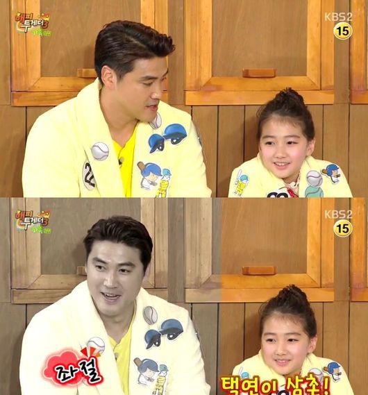 이어 MC들이 "택연 오빠가 잘생겼어? 아빠가 잘 생겼어?"라고 물었고, 화리는 아빠를 쳐다보지도 않고 "택연오빠"라고 말해 웃음을 자아냈다.