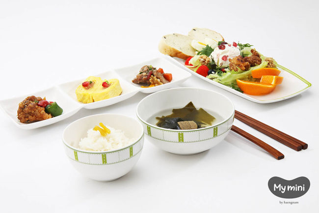 '마이 미니'는 ▲요리를 돋보이게 하는 화이트 식기 3종 ▲블루, 그린, 오렌지 등의 컬러를 적용하여 음식과의 조화를 이루는 캐주얼한 패턴의 '레일' 식기 3종으로 선보인다. 최근 열풍을 일으키고 있는 홈파티나 소박한 밥상을 나누는 '킨포크(kinfolk) 스타일'의 상차림에도 안성맞춤이다.