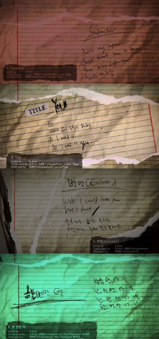 지소울은 이번 앨범 전곡 작사/작곡에 참여했다. 전곡 모두 그의 경험에서 나온 진실된 가사들로 최대한 솔직하게 자신의 이야기를 하는데 중점을 두어 싱어송라이터서의 재능을 확연히 드러냈다.