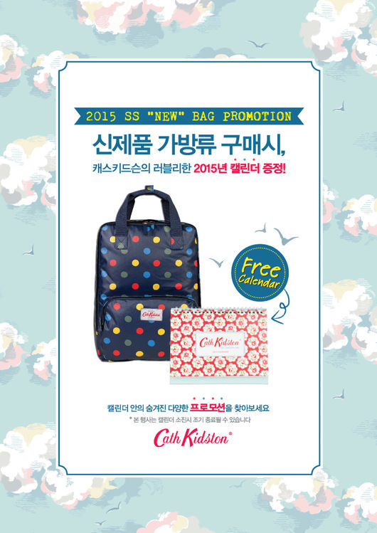 런던 라이프 스타일 브랜드 캐스키드슨(Cath Kidston)은 오는 16일부터 15SS 신제품 가방 구매 시 2015년 캘린더를 증정하는 이벤트를 진행한다고 밝혔다.