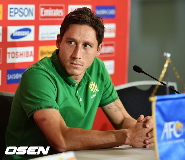 16일 오후(이하 한국시간) 호주 브리즈번 스타디움에서 2015 AFC 호주 아시안컵대회 호주대표팀이 예선 3차전 한국과의 경기를 하루 앞두고 공식 기자회견을 가졌다. 호주 마크 밀리건이 기자회견을 하며 생각에 잠겨있다.