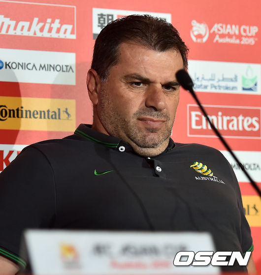 16일 오후(이하 한국시간) 호주 브리즈번 스타디움에서 2015 AFC 호주 아시안컵대회 호주대표팀이 예선 3차전 한국과의 경기를 하루 앞두고 공식 기자회견을 가졌다. 호주 안제 포스테코글루 감독이 기자회견을 하며 생각에 잠겨있다.