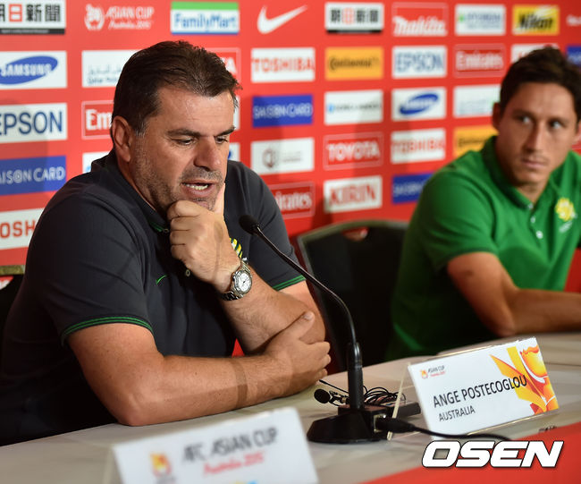 16일 오후(이하 한국시간) 호주 브리즈번 스타디움에서 2015 AFC 호주 아시안컵대회 호주대표팀이 예선 3차전 한국과의 경기를 하루 앞두고 공식 기자회견을 가졌다. 호주 안제 포스테코글루 감독이 기자회견을 하고 있다.
