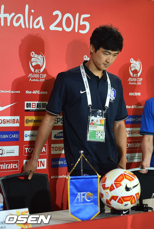 16일 오후(이하 한국시간) 호주 브리즈번 스타디움에서 2015 AFC 호주 아시안컵대회 한국대표팀이 예선 3차전 호주와의 경기를 하루 앞두고 공식 기자회견을 가졌다. 곽태휘가 의자에 착석하고 있다.