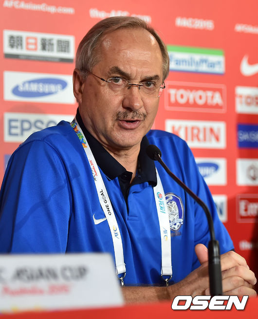 16일 오후(이하 한국시간) 호주 브리즈번 스타디움에서 2015 AFC 호주 아시안컵대회 한국대표팀이 예선 3차전 호주와의 경기를 하루 앞두고 공식 기자회견을 가졌다. 슈틸리케 감독이 기자회견을 하고 있다.