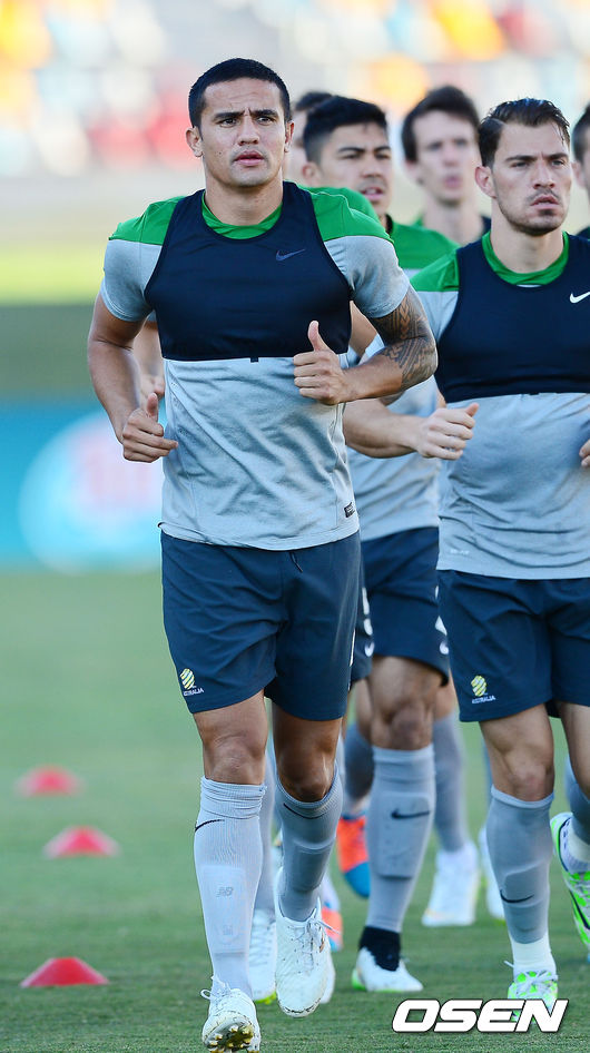 16일 오후(이하 한국시간) 호주 브리즈번 퀸슬랜드 스포츠&애틀레틱 센터에서 2015 AFC 호주 아시안컵대회 호주대표팀이 예선 3차전 한국과의 경기를 위해 훈련을 가졌다. 호주의 팀 케이힐이 훈련을 하고 있다.