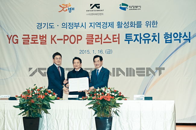 YG엔터테인먼트(이하 YG)가 경기도, 의정부시와 함께 국내 최초 글로벌 K-POP 클러스터 조성을 위한 투자 협약식을 가졌다.