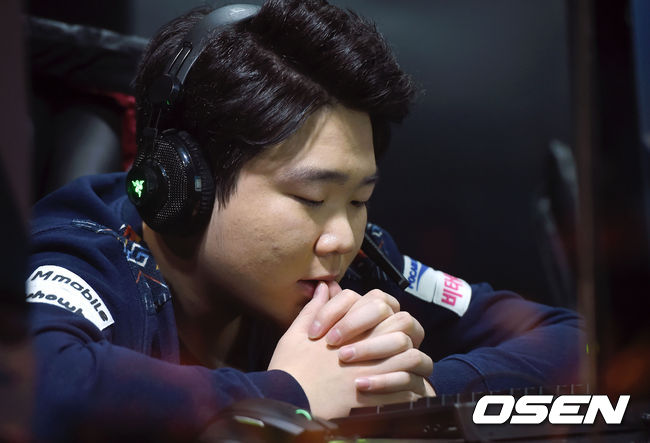 KT 롤스터 원딜 '에로우' 노동현이 생각에 잠겨있다.