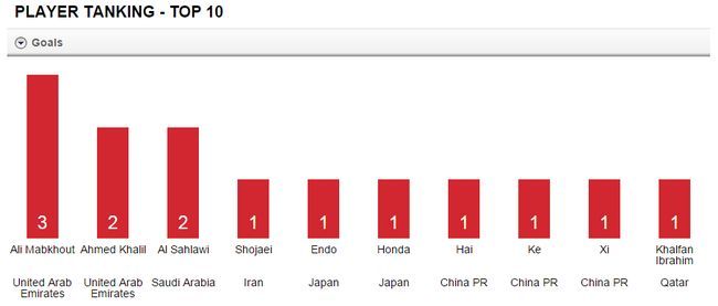 이날 경기 전까지 대회 득점 랭킹 1위에 올라있던 선수는 알리 마브코트(UAE, 3골)이었다. 그러나 팔레스타인전에서 4골을 몰아친 알 다르두르가 순식간에 득점 랭킹 1위로 뛰어오르면서 대회 득점왕 경쟁에 도전장을 내밀게 됐다.