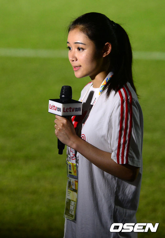 16일 오후(이하 한국시간) 호주 브리즈번 페리 파크에서 2015 AFC 호주 아시안컵대회 한국대표팀이 예선 3차전 호주와의 경기를 위해 훈련을 가졌다. 중국의 리포터가 한국 훈련때 방송을 하고 있다.