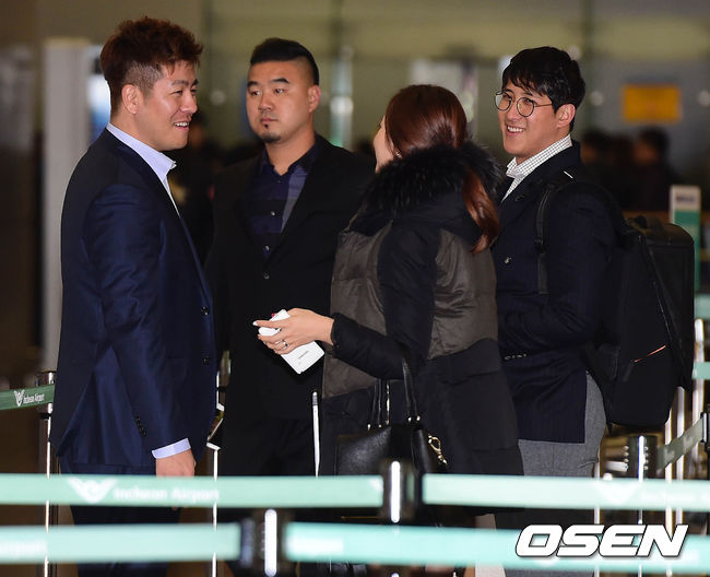 16일 오후 인천국제공항을 통해 미국 애리조나로 전지훈련을 떠나는 롯데 강민호, 황재균, 송승준이 출국 수속을 기다리고 있다.