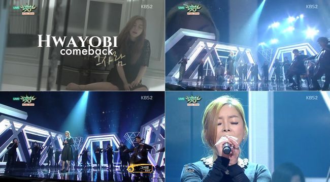화요비는 16일 오후 방송된 KBS 2TV 가요프로그램 ‘뮤직뱅크’에서 신곡 ‘그 사람’의 무대를 선보였다.