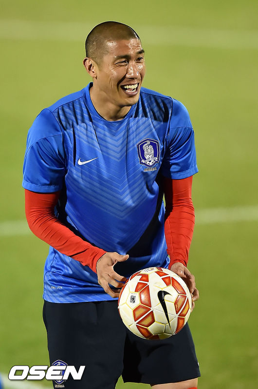 16일 오후(이하 한국시간) 호주 브리즈번 페리 파크에서 2015 AFC 호주 아시안컵대회 한국대표팀이 예선 3차전 호주와의 경기를 위해 훈련을 가졌다. 차두리가 환하게 웃으며 선수들을 독려하고 있다.