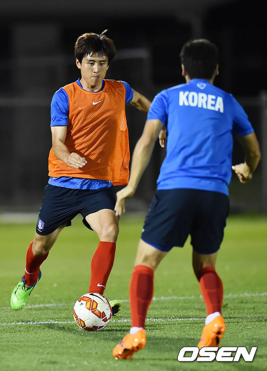 16일 오후(이하 한국시간) 호주 브리즈번 페리 파크에서 2015 AFC 호주 아시안컵대회 한국대표팀이 예선 3차전 호주와의 경기를 위해 훈련을 가졌다. 구자철이 미니게임중 돌파를 시도하고 있다.