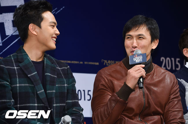 16일 오후 서울 압구정CGV에서 진행된 영화 '내 심장을 쏴라' 쇼케이스에서 배우 유오성이 질문에 답하고 있다.