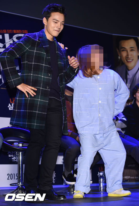 16일 오후 서울 압구정CGV에서 진행된 영화 '내 심장을 쏴라' 쇼케이스에서 배우 여진구가 EXID 위아래 춤을 팬과 추고 있다.
