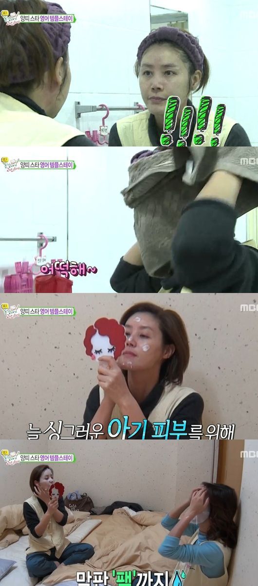 김성령은 세수 후 수가지의 화장품을 바르고 팩을 하며 동안 피부를 유지하는 방법을 살짝 공개했다.