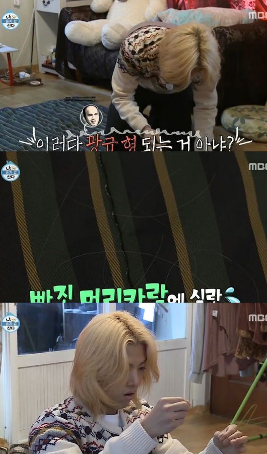 16일 방송된 MBC '나 혼자 산다'에서는 새해 아침 무지개 회원들의 모습이 그려졌다. 강남은 새해 아침 일어나 이불을 개다 머리카락이 많이 떨어져 있는 것 보고 놀란다.