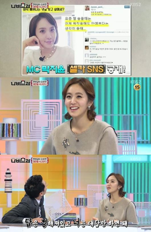 박지윤은 16일 방송된 KBS 2TV 미래예측 버라이어티 ‘나비효과’에서 “SNS에 ‘요즘 제일 슬플 때는 이제 뭔 짓을 해도 안 예쁘다는 생각이 들 때’는 글을 올린 적이 있다”고 말했다.