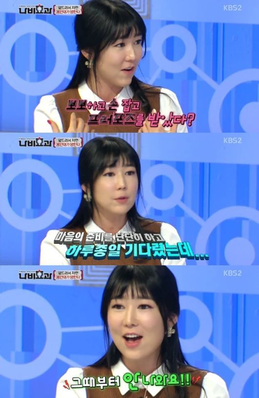 사유리는 16일 방송된 KBS 2TV 미래예측 버라이어티 ‘나비효과’에서 “독특한 꿈을 꾼 적이 있나”라는 질문에 “옛날 남자친구가 꿈에 나와서 뽀뽀하고 손잡고 프러포즈 했다”고 말했다.
