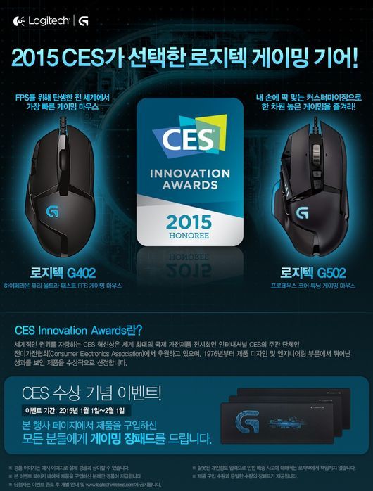 개인용 주변기기 전문기업 로지텍 코리아(지사장 정철교, www.logitech.co.kr)는 자사 4개 제품이 2015 CES에서 수사한 것을 기념하여 게이밍 기어, 무선 제품 관련 이벤트를 진행한다.