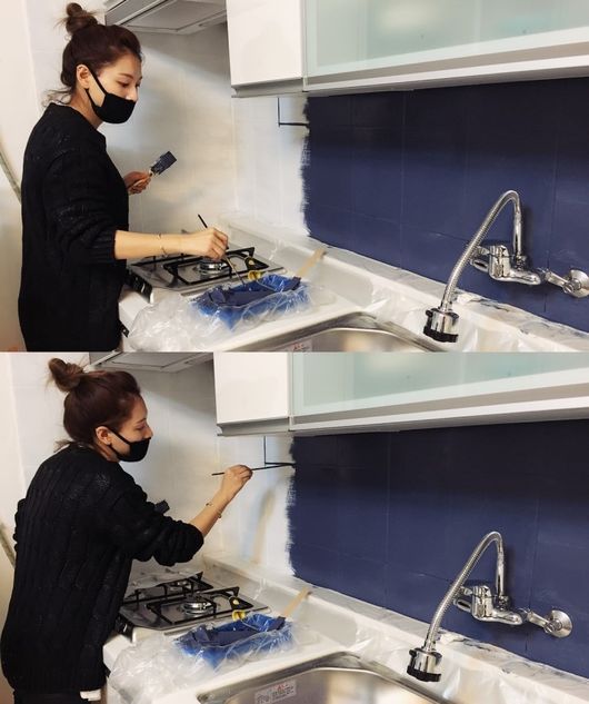 주방 타일 줄눈을 깔끔하게 정리하고 페인트를 구매해 색을 다시 칠하는 과정을 글과 사진으로 설명해가며 열정적인 모습을 보이기도 했다.