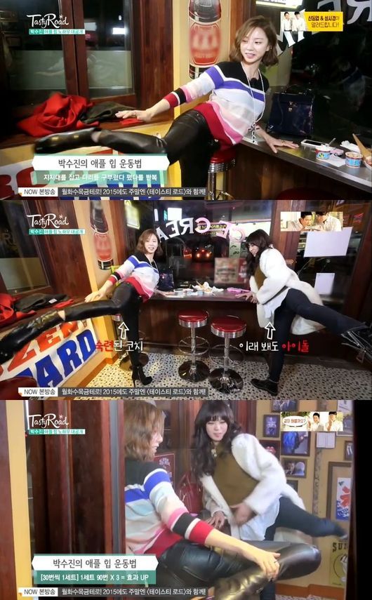 이에 박수진은 "사실 옆 엉덩이 운동도 해줘야한다"고 말하면서 운동법을 공개해 눈길을 끌었다.