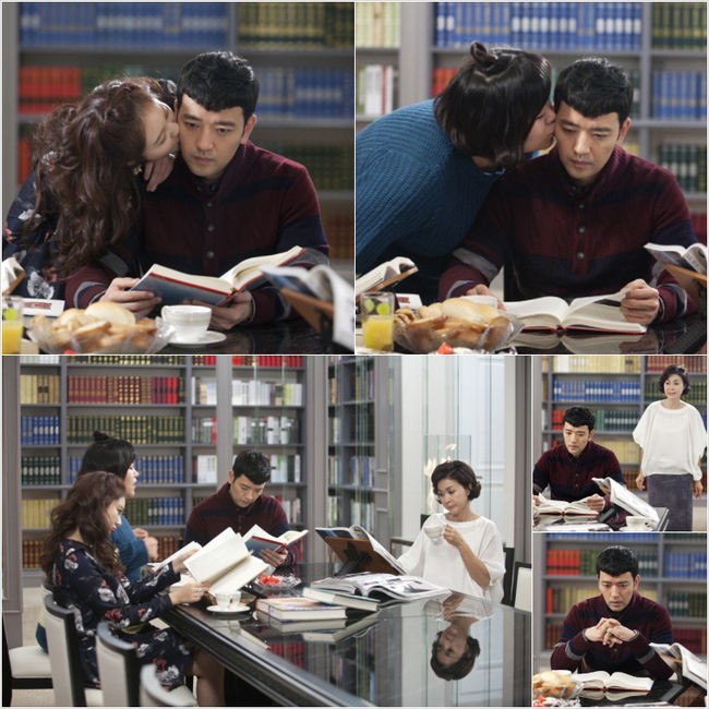 이날 공개된 사진에서 배수빈이 여동생들인 손은서와 하재숙의 ‘릴레이’ 볼뽀뽀 세례를 받는 모습이 포착돼 눈길을 끈다. 극중 ‘운탁 패밀리’의 강제 독서 시간을 끝마치고 방으로 돌아가던 천금비(손은서)와 천은비(하재숙)가 천운탁에게 굿나잇 키스를 한 뒤 마지막으로 황미자(금보라)까지 순서대로 줄행랑을 치는 장면.